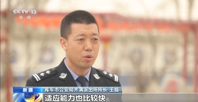 庫(kù)車(chē)市公安局齊滿(mǎn)派出所所長(zhǎng) 王磊:他們警務(wù)站站長(zhǎng)告訴我們,這個(gè)小伙子來(lái)了以后適應(yīng)能力比較快,很快就能適應(yīng)警務(wù)站的日常工作。