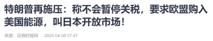 一覺醒來,特朗普再發(fā)威脅,警告中國在4月8號前取消報復,不然4月9號就對中國再加50%額外關稅,此外所有和中國的談判都會中止,而和其他國家的談判將立即開始。