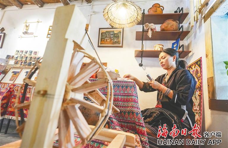 東方市八所鎮(zhèn)北黎村,村民在店內(nèi)織錦。海南日?qǐng)?bào)全媒體記者陳元才 攝