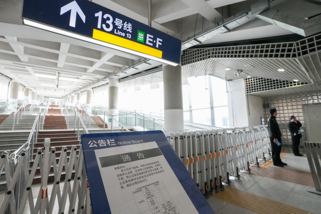 4月12日,北京地鐵西直門站13號線換乘入口張貼了部分軌道交通線路因大風天氣停運的通知。當日,我國北方多地出現(xiàn)大風降溫天氣。新華社記者 鞠煥宗 攝