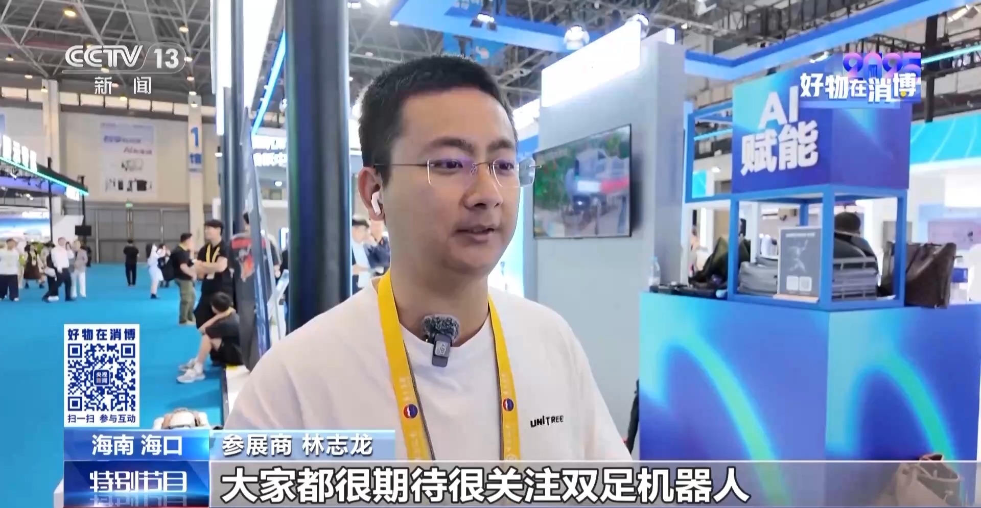 參展商 林志龍:大家都很期待很關(guān)注雙足機器人,這次來消博會,也是想更加廣泛聽取消費者對于產(chǎn)品的包括場景需求應(yīng)用的呼聲,然后可以針對性地再去做之后的產(chǎn)品的設(shè)計和規(guī)劃。