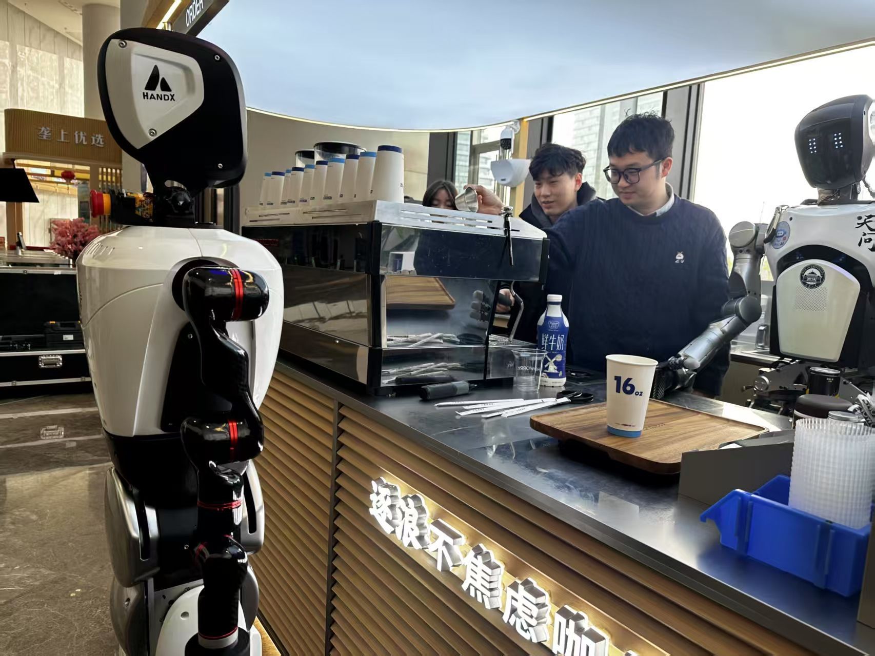 光谷街頭的咖啡店里,“天問(wèn)”系著圍裙,熟練地為顧客送上咖啡;