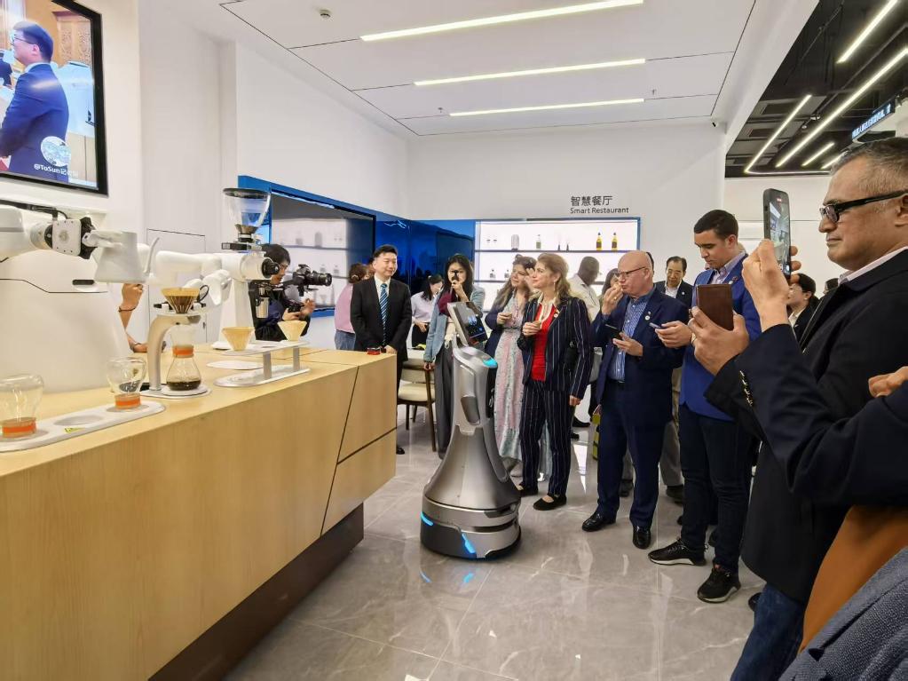 機(jī)器大廚、機(jī)器舞者、機(jī)器咖啡師……在九江機(jī)器人小鎮(zhèn),使節(jié)們與各種功能的機(jī)器人“親密接觸”,現(xiàn)場(chǎng)體驗(yàn)智慧家居、智慧政務(wù)、咖啡機(jī)器人、無(wú)人餐廳帶來(lái)的便捷。