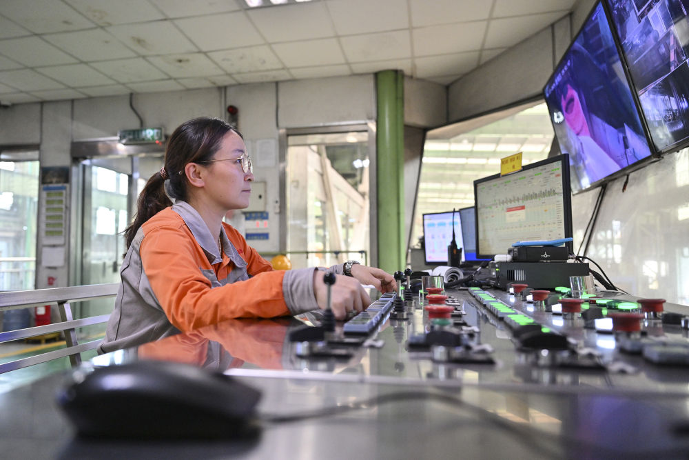 2024年6月13日,在馬來西亞彭亨州馬中關(guān)丹產(chǎn)業(yè)園聯(lián)合鋼鐵(大馬)集團公司工廠,中國員工在智能控制室工作。