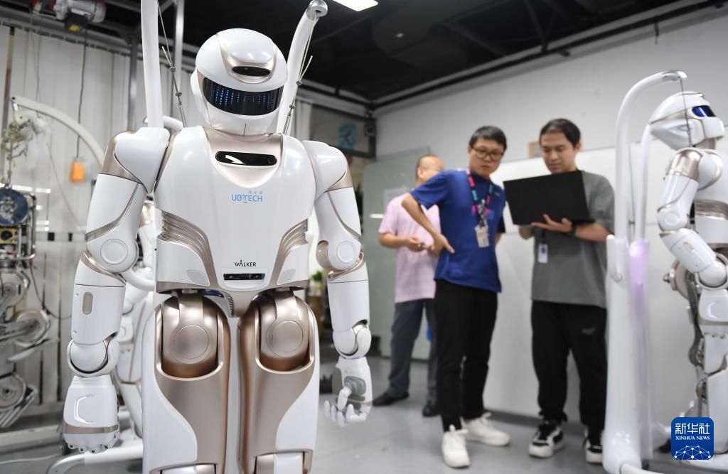 2024年6月26日,在位于深圳市南山智園的優(yōu)必選總部,工作人員對人形機(jī)器人進(jìn)行測試。新華社記者毛思倩 攝