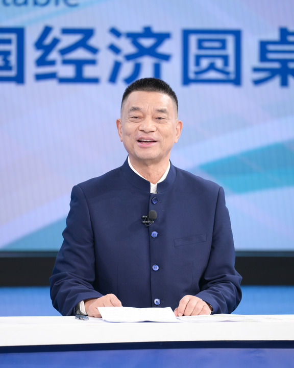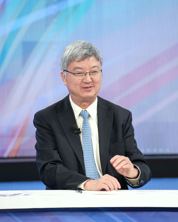 中國國際經(jīng)濟(jì)交流中心資深專家委員朱民在第十五期“中國經(jīng)濟(jì)圓桌會”錄制現(xiàn)場發(fā)言。新華社記者 李賀 攝