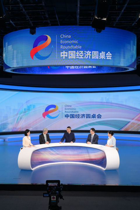 嘉賓們在第十五期“中國經(jīng)濟(jì)圓桌會”大型全媒體訪談節(jié)目錄制現(xiàn)場交流發(fā)言。新華社記者 李賀 攝