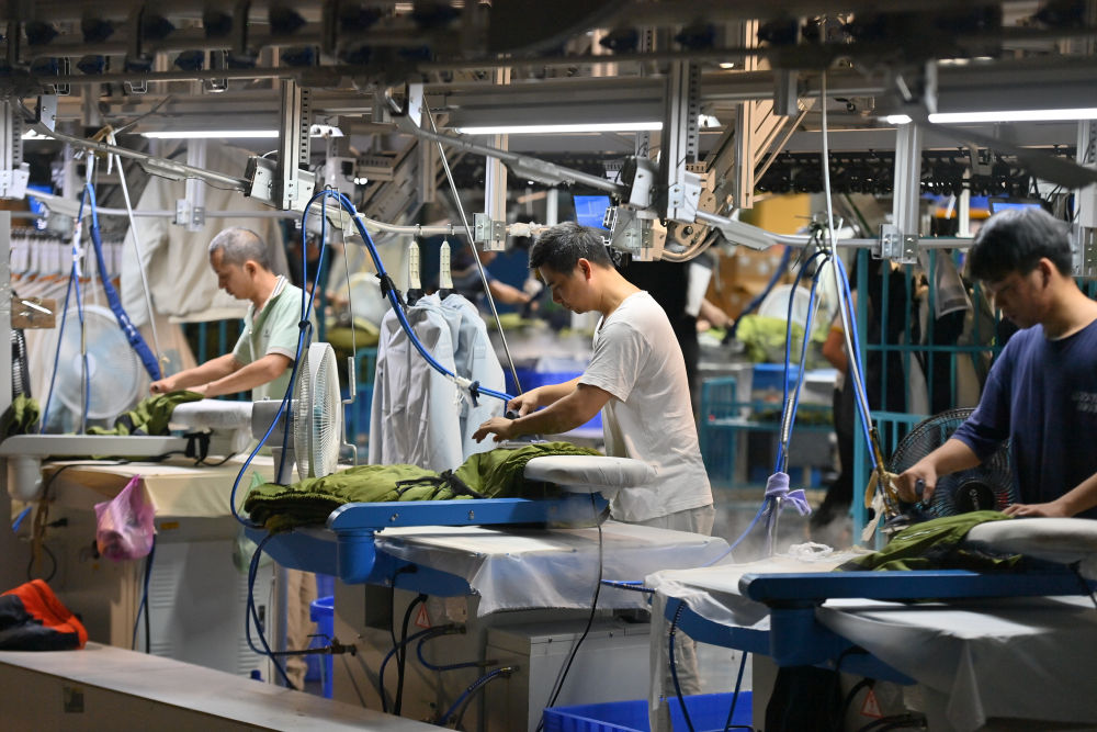 工人在廣西北流一服裝生產(chǎn)企業(yè)生產(chǎn)線上作業(yè)(2023年11月30日攝)。新華社記者 黃孝邦 攝