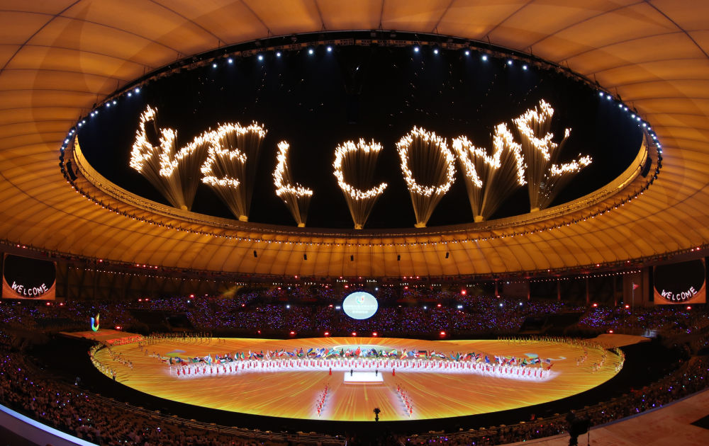 第31屆世界大學(xué)生夏季運(yùn)動會開幕式。(資料圖)新華社記者 江宏景 攝