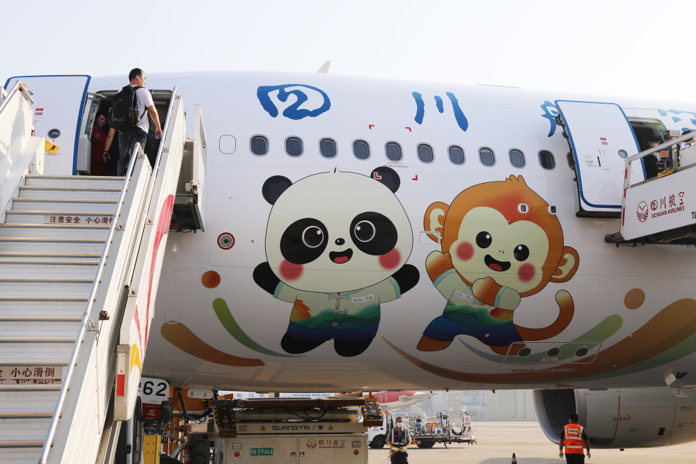 藍(lán)天白云之上,一架噴涂著成都世運(yùn)會吉祥物“蜀寶”“錦仔”的空客A330寬體客機(jī),在萬眾矚目中一飛沖天……4月18日,四川航空首架“成都世運(yùn)號”主題涂裝飛機(jī)首航。擁有2300多年建城史的成都,正以創(chuàng)新精神和飽滿熱情,在“家門口”迎接世運(yùn)會這一國際體育盛會的到來。