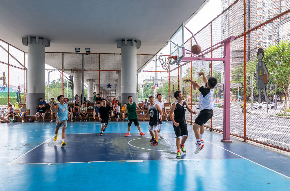 人們在成都市府青路立交橋下的運(yùn)動空間打籃球。(資料圖)新華社發(fā)(杜寧 攝)