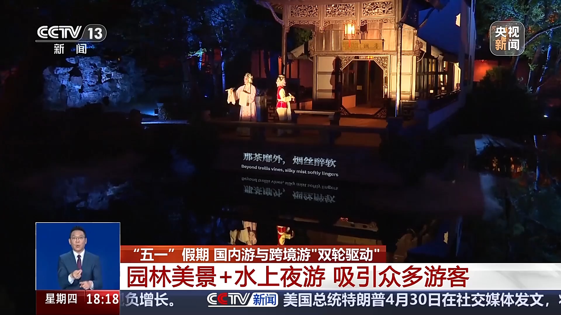 “五一”期間,作為旅游熱門城市的蘇州也迎來了大客流。在最具江南韻味的蘇州老城區(qū),在全息投影等技術支持下,蘇州園林夜游、河畔人家水上游等項目受到游客歡迎。