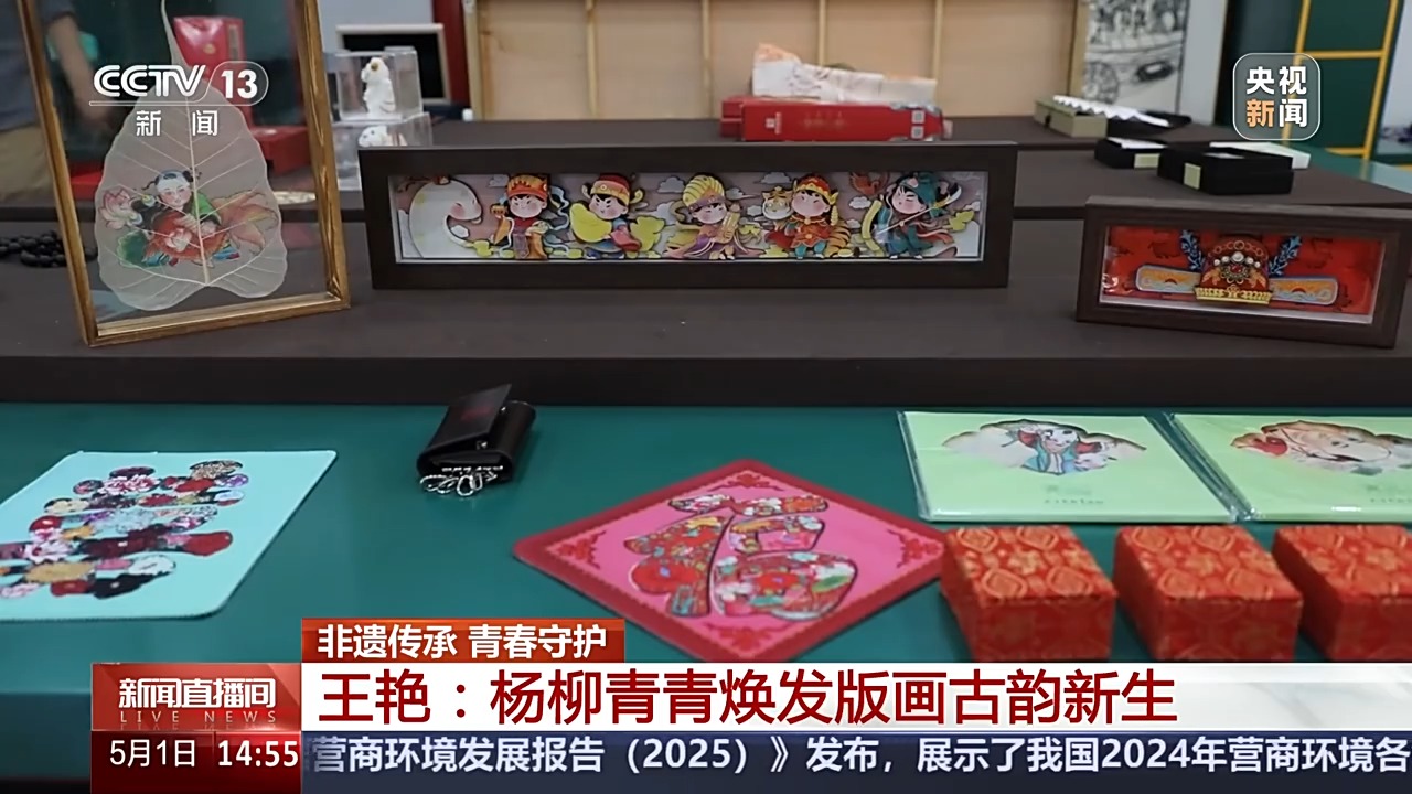 王艷在“老版復(fù)生”過(guò)程中,拆解傳統(tǒng)技法,比如畫(huà)訣中短胳膊短腿是多短?小鼻子大眼睛的比例怎樣會(huì)更好?她一一詳細(xì)記錄,貢獻(xiàn)了青年傳承人的“新民間經(jīng)驗(yàn)”。如今,古版年畫(huà)中的楊柳青元素也被開(kāi)發(fā)成各式新潮的文創(chuàng)產(chǎn)品,“過(guò)年才貼的畫(huà)”變成了“身邊常見(jiàn)的畫(huà)”,讓年輕的消費(fèi)者愛(ài)不釋手。
