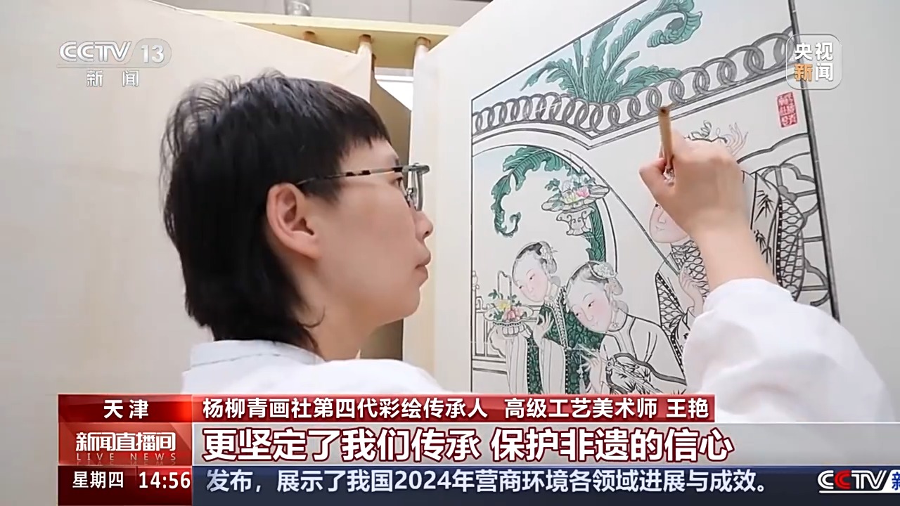 楊柳青畫(huà)社第四代彩繪傳承人、高級(jí)工藝美術(shù)師 王艷:人們的喜愛(ài),讓我收獲了更多的文化認(rèn)同感,更堅(jiān)定了我們傳承、保護(hù)非遺的信心,希望我們可以創(chuàng)作出更多具有這個(gè)時(shí)代屬性的新年畫(huà)。