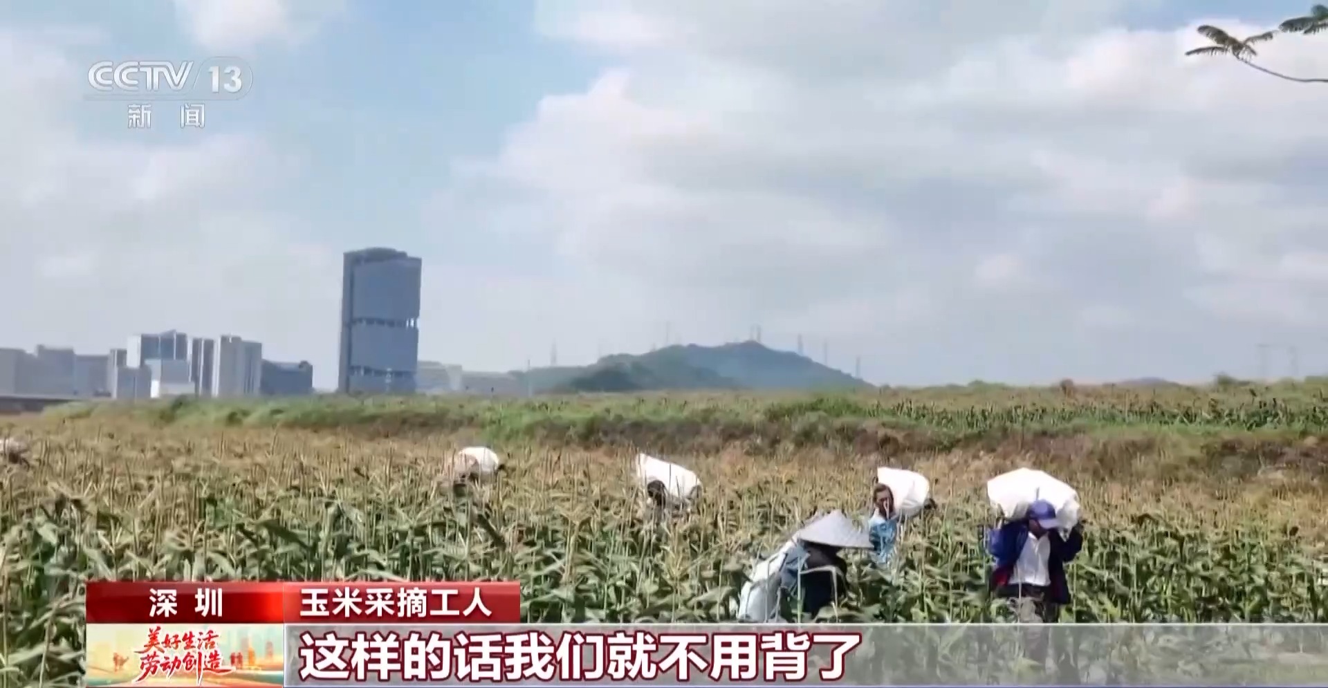 總臺(tái)央視記者 張春玲:在深圳光明區(qū),2000畝的玉米地都已經(jīng)成熟了,這次我的工作當(dāng)中有了一個(gè)新搭子——采摘小車。