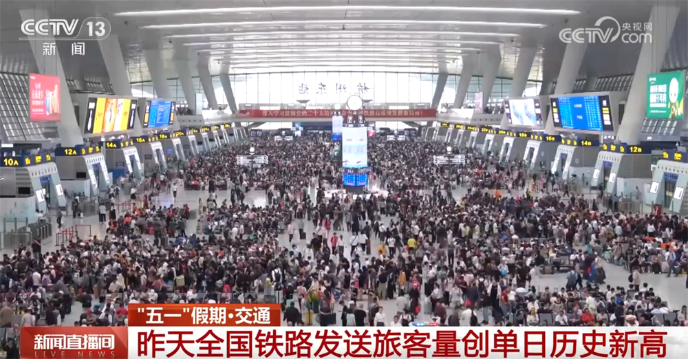 央視網(wǎng)消息:5月2日是“五一”假期的第二天,5月1日假期首日,交通運(yùn)輸保持高位運(yùn)行態(tài)勢,全國鐵路單日旅客發(fā)送量創(chuàng)歷史新高。5月2日,短途出行客流明顯增加。