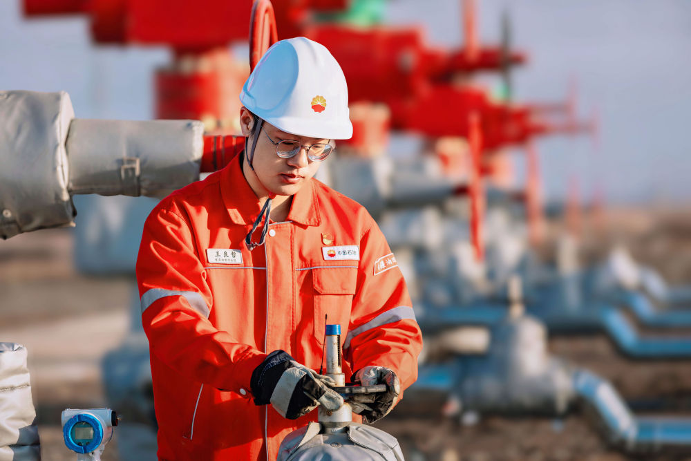王良哲在吉慶油田作業(yè)區(qū)摸排新投產(chǎn)水平井的生產(chǎn)狀況(2025年4月15日攝)。新華社發(fā)