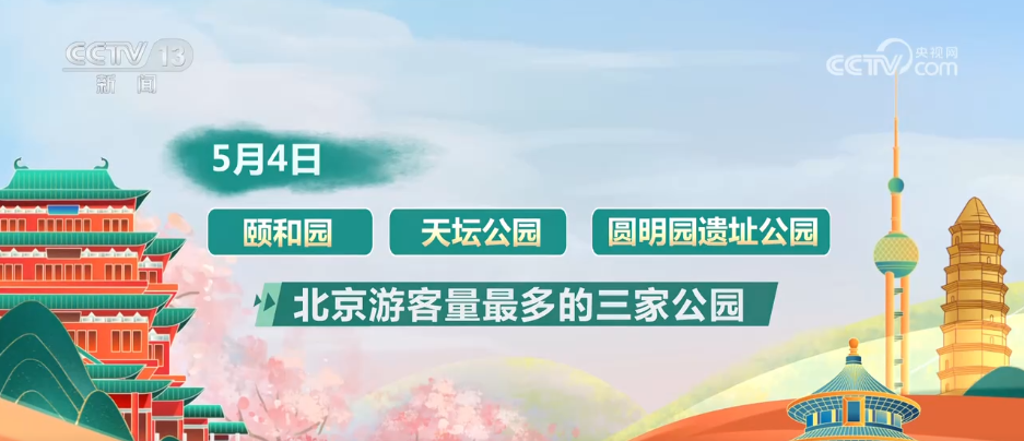 據(jù)北京市園林綠化局統(tǒng)計(jì),5月4日,北京全市公園共接待游客218.13萬(wàn)人次,與去年同期相比增加14.09%。其中,頤和園、天壇公園、圓明園遺址公園是北京游客量最多的三家公園?!拔逡弧奔倨谇八奶?,全市公園累計(jì)游客接待量超780萬(wàn)人次,4日是游客最多的一天。