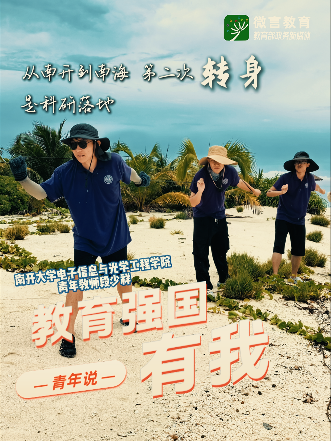 習(xí)近平總書記強(qiáng)調(diào),全面推進(jìn)強(qiáng)國建設(shè)、民族復(fù)興偉業(yè),正是年輕一代展示才華、大顯身手的好時(shí)候。教育強(qiáng)國建設(shè),青年何為?五四青年節(jié)之際,教育部政務(wù)新媒體啟動(dòng)“教育強(qiáng)國,有我!”網(wǎng)絡(luò)主題宣傳活動(dòng),推出“青年說(奮進(jìn)篇)”系列,展現(xiàn)青年師生以青春之我、奮斗之我投身教育強(qiáng)國建設(shè)的生動(dòng)實(shí)踐。今天,跟教育小微通過1個(gè)微視頻和1組海報(bào),來看南開大學(xué)新青年用三次“轉(zhuǎn)身”寫下的青春答案——
