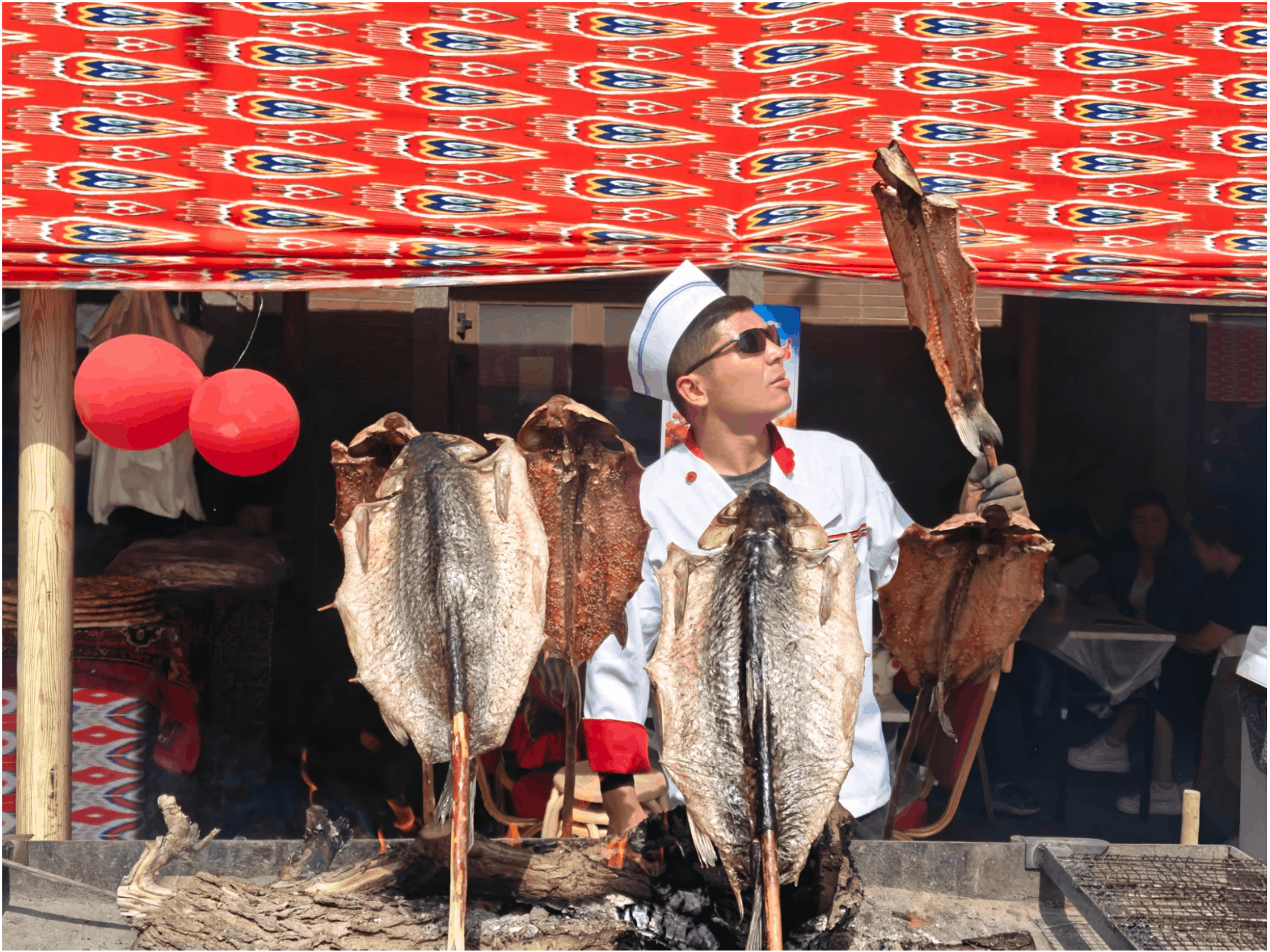 以“烤”為筆、以“味”為墨,2025新疆·尉犁第十二屆羅布人民俗燒烤季繪就一幅熱鬧非凡、充滿地方特色的鮮活畫卷,吸引全疆乃至全國游客共赴一場美味之約。百余個燒烤攤位沿青石板路在達西馕街有序排開,胡楊木炭在烤爐中明明滅滅,將印著艾德萊斯紋樣的遮陽棚映成流動的彩緞。本屆燒烤季活動整合全縣8個鄉(xiāng)鎮(zhèn)的特色美食與文旅資源,帶動200余戶農(nóng)牧民增收,讓烤肉、烤鴿子、烤魚等“鄉(xiāng)味”變身“網(wǎng)紅”,推動“舌尖經(jīng)濟”向“品牌經(jīng)濟”不斷升級。