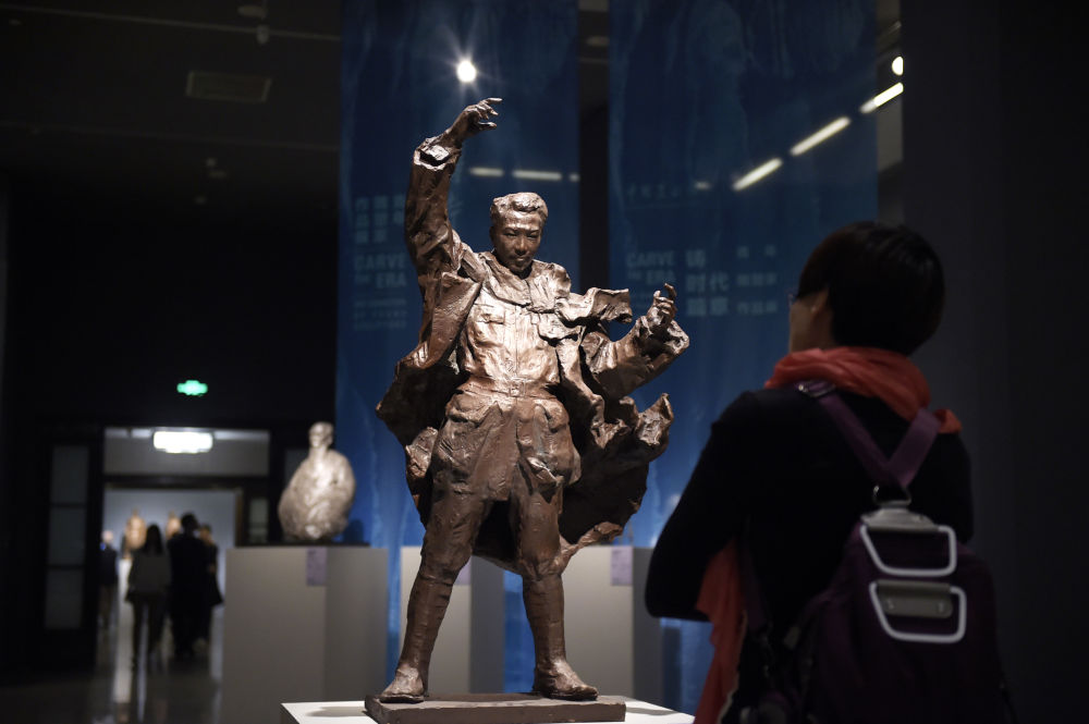 2018年4月1日,參觀者在北京的中國(guó)美術(shù)館參觀雕塑作品“冼星海”。