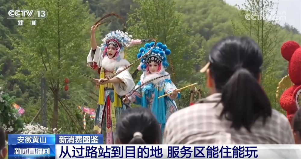 在這座位于山間的休閑廣場上,各種娛樂項目為旅客提供了多元化的休閑體驗,像徽戲表演、炒茶體驗、竹編技藝等非遺活動也為研學(xué)游提供了好去處。