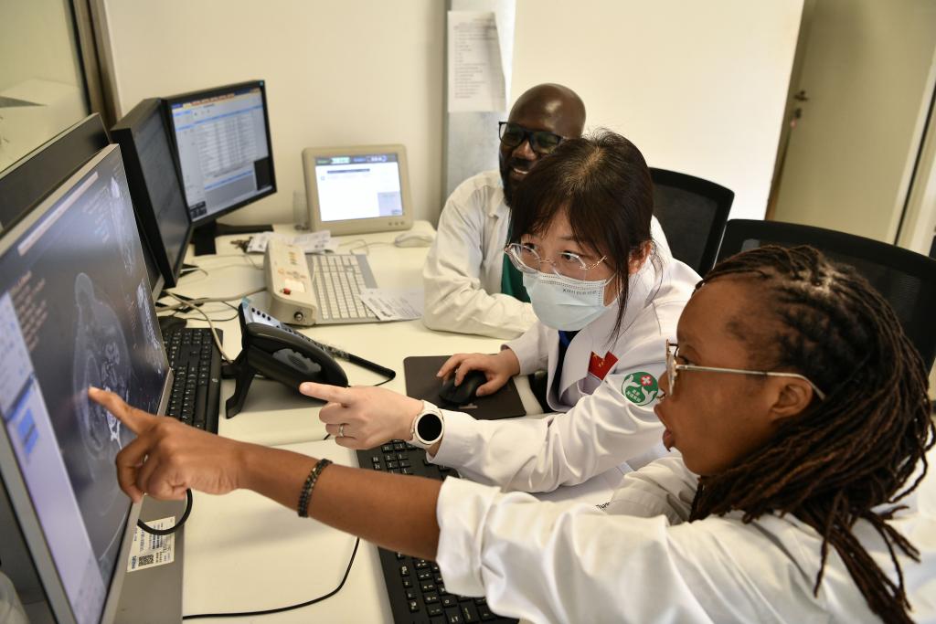 此刻,一名幾內(nèi)亞青年醫(yī)生正在骨科手術(shù)室觀摩骨科AI智能診斷及手術(shù)模擬規(guī)劃,他的白大褂口袋里還揣著在北京培訓(xùn)時的筆記;急診科的中幾醫(yī)護團隊又接到了新的搶救任務(wù),走廊里響起急促的腳步聲。
