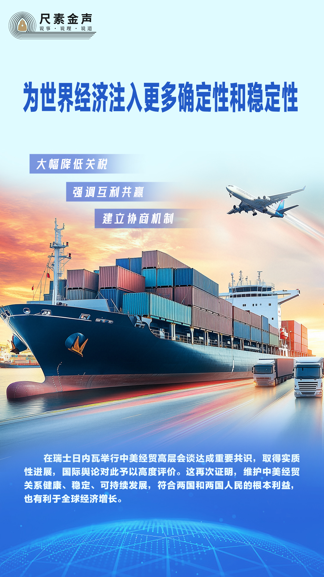 在瑞士日內(nèi)瓦舉行中美經(jīng)貿(mào)高層會(huì)談達(dá)成重要共識(shí),取得實(shí)質(zhì)性進(jìn)展,國際輿論對此予以高度評(píng)價(jià)。這再次證明,維護(hù)中美經(jīng)貿(mào)關(guān)系健康、穩(wěn)定、可持續(xù)發(fā)展,符合兩國和兩國人民的根本利益,也有利于全球經(jīng)濟(jì)增長。