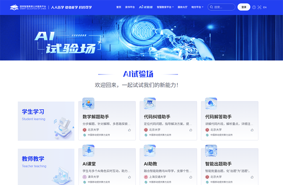 圖為國(guó)家智慧教育公共服務(wù)平臺(tái)上的“AI試驗(yàn)場(chǎng)”板塊