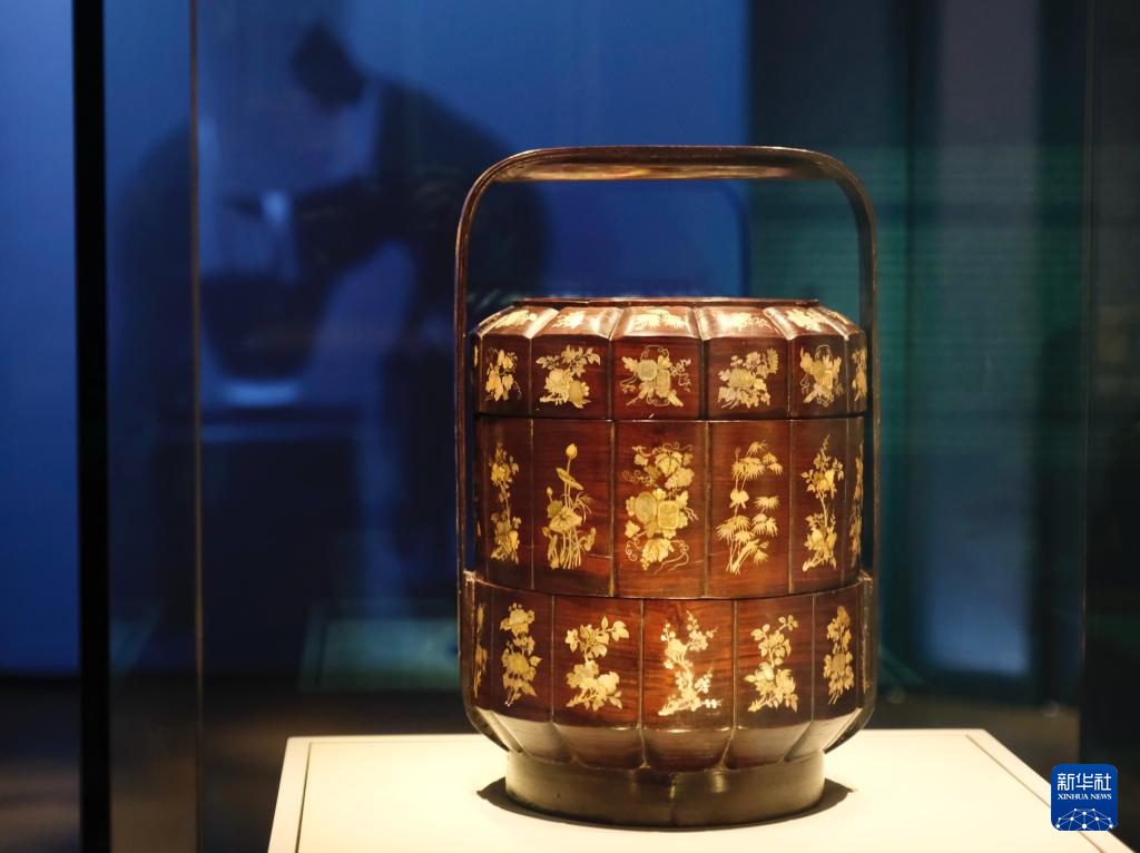 一位參觀者輕聲說:“古代的攢盒很像如今的全盒,一下子就想起了奶奶的點心匣子?!?/p>