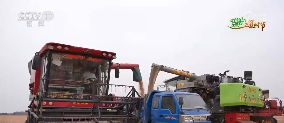 在河南南陽鄧州構林鎮(zhèn)這處麥田,金黃的麥浪層層鋪開,麥穗 在陽光下熠熠生輝。4臺聯合收割機開足馬力穿梭在麥田間,伴隨著機器的轟鳴聲,成熟的小麥被快速收割、脫粒,金黃的麥粒從收割機的出糧口傾瀉而出,裝入一旁的運輸車輛。