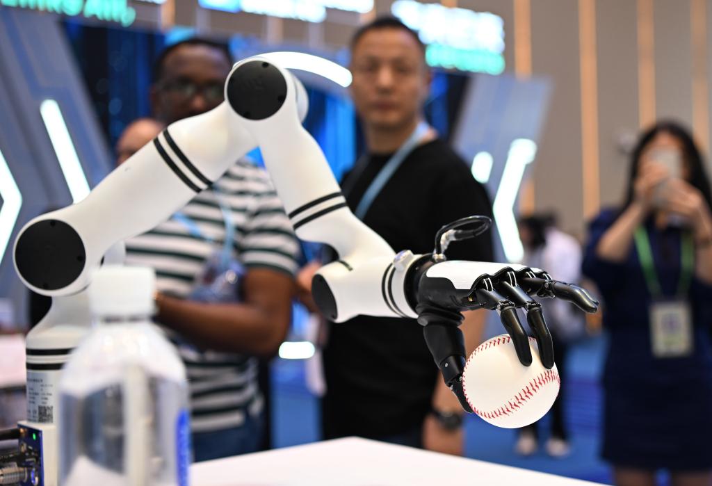 2025年4月15日,在第137屆廣交會(huì)服務(wù)機(jī)器人專區(qū),機(jī)械臂展示靈巧手功能。新華社記者 鄧華 攝