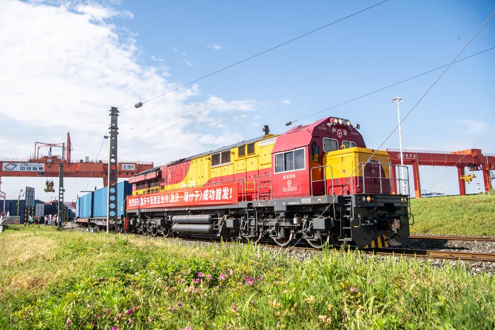 4月20日上午,一列滿載“重慶造”聚酯切片的中亞班列,從重慶團(tuán)結(jié)村中心站緩緩駛出,這是重慶首次開(kāi)行圖定中亞班列,此后將以每月2列的固定頻次實(shí)現(xiàn)常態(tài)化開(kāi)行。新華社記者 唐奕 攝