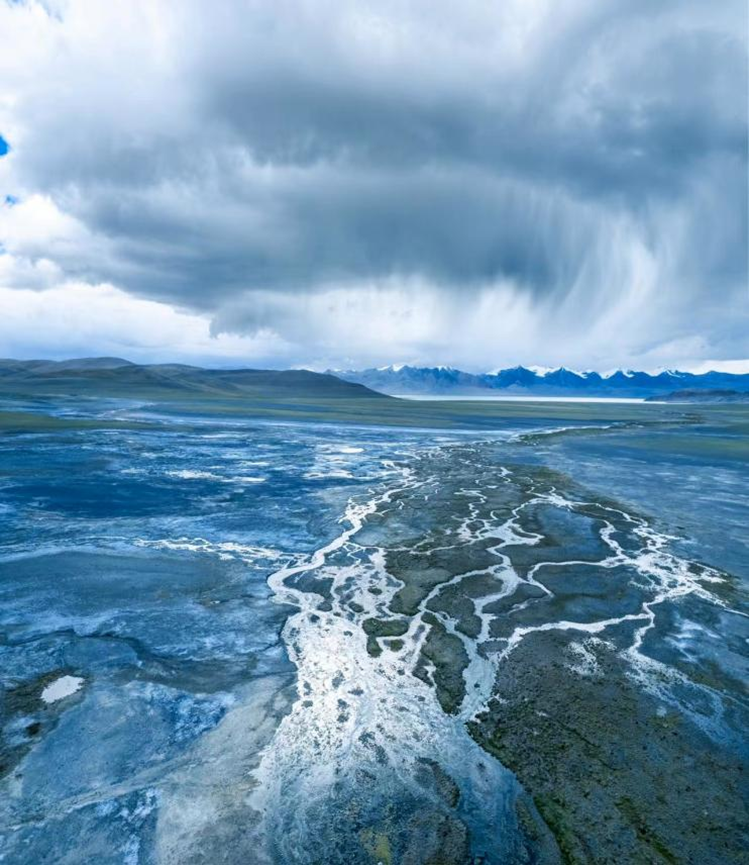 李冬:這張作品是《颶風(fēng)》,拍攝于2022年,采用無人機拍攝完成創(chuàng)作。當時,我和幾個攝影師朋友同行自駕來到了阿里地區(qū),為探尋獨特的拍攝視角,我們決定不走常規(guī)路線。通過地圖研究,我們發(fā)現(xiàn)在岡底斯山脈的腹地有一個地方叫帕龍錯,雖然能夠在網(wǎng)上搜索到帕龍措,但是鮮有攝影師涉足此地,這就激發(fā)了我們的探索欲,到不到單說,就是想過去看看。