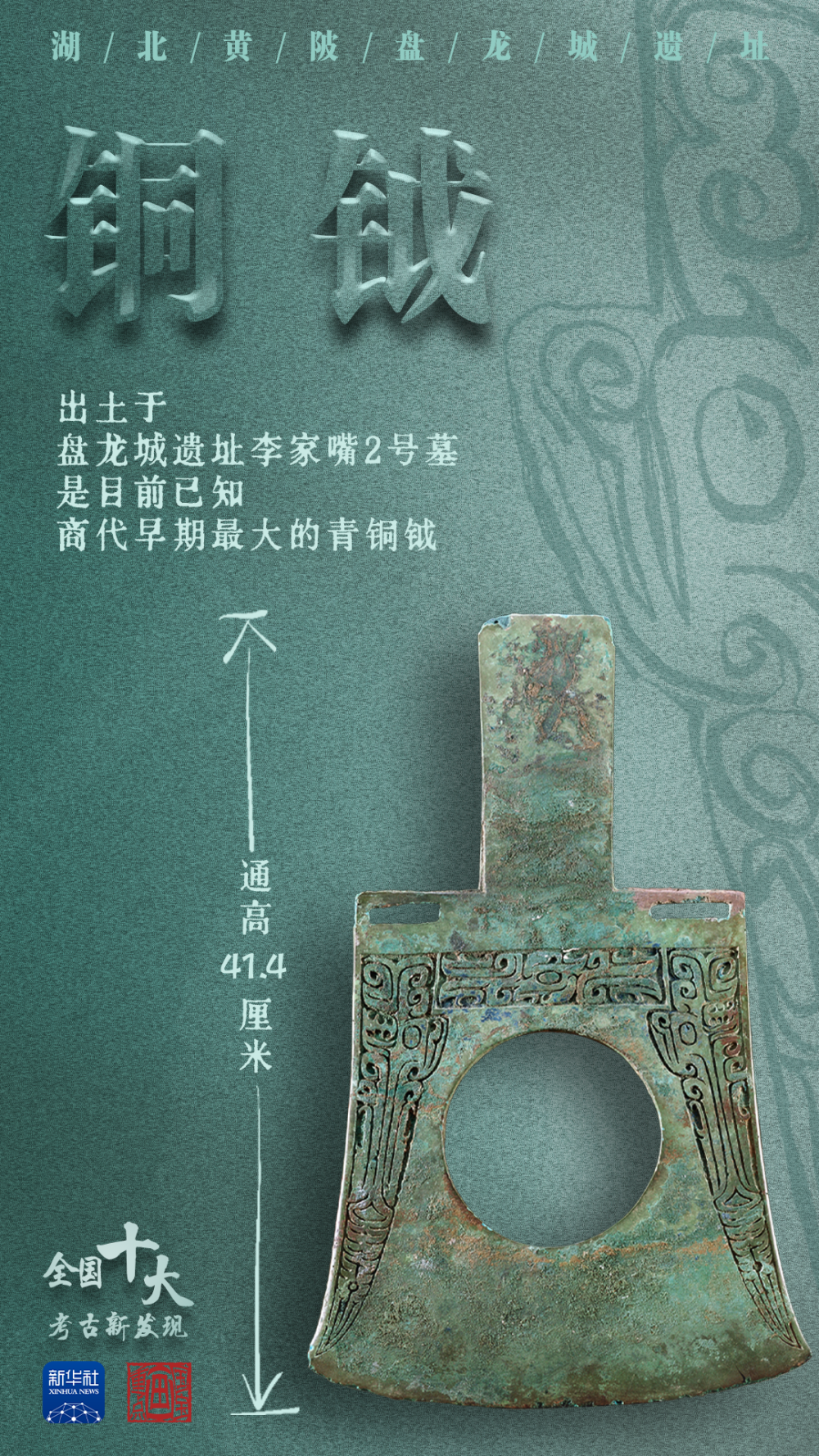 出土于盤龍城遺址李家嘴2號(hào)墓的銅鉞
