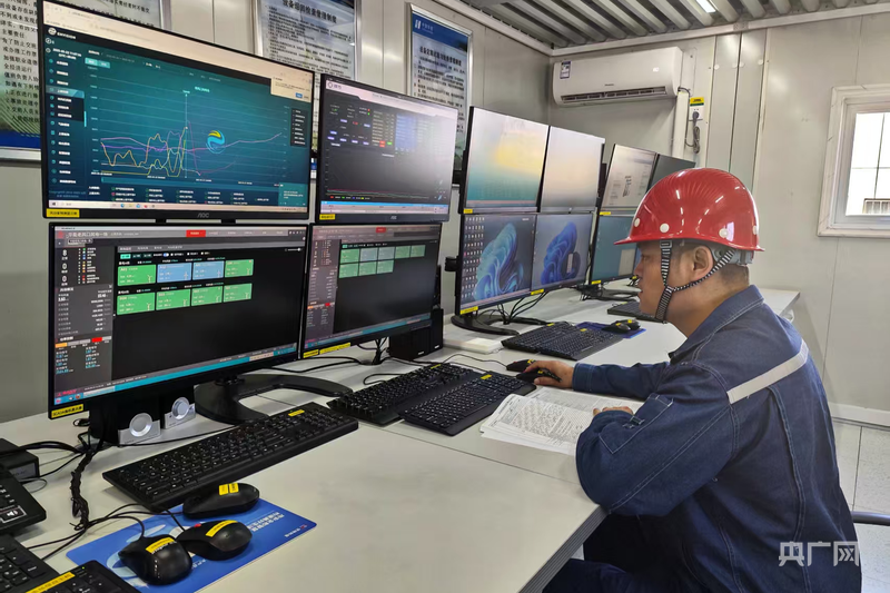 華能塔城地區(qū)托里縣50萬千瓦風(fēng)電項目人員在查看后臺 (央廣網(wǎng)發(fā) 馬曉杉 攝)