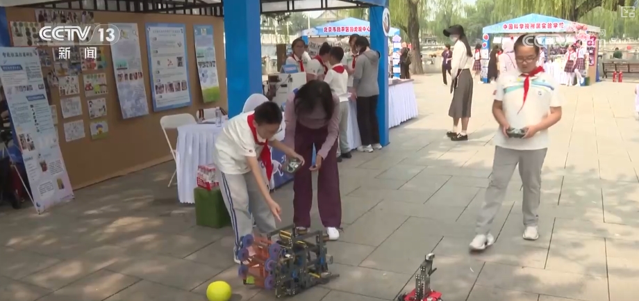 “科技強(qiáng)國(guó)”小學(xué)生社團(tuán)風(fēng)采展示活動(dòng)也在現(xiàn)場(chǎng)同步開(kāi)展。來(lái)自北京各個(gè)學(xué)校的少先隊(duì)科技社團(tuán)齊聚一堂,孩子們興致盎然地分享自己設(shè)計(jì)拼裝的投球機(jī)器人、巡防機(jī)器人、智能消毒碗柜等精彩紛呈的科技成果。