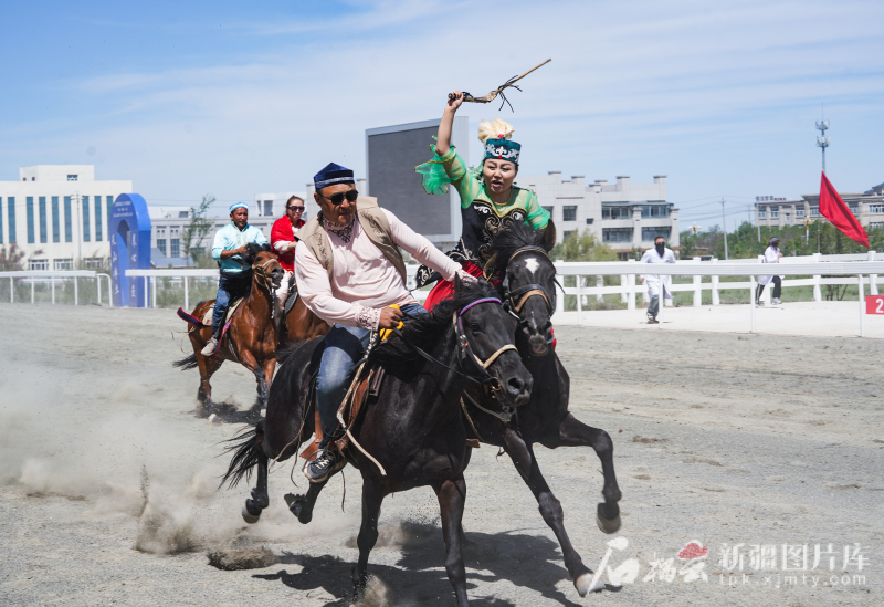 5月31日,中國·新疆第五屆駱駝產(chǎn)業(yè)展暨全疆賽馬大會(huì)在木壘哈薩克自治縣激情啟幕?;顒?dòng)現(xiàn)場(chǎng)在進(jìn)行“姑娘追”表演。常誼誼 攝
