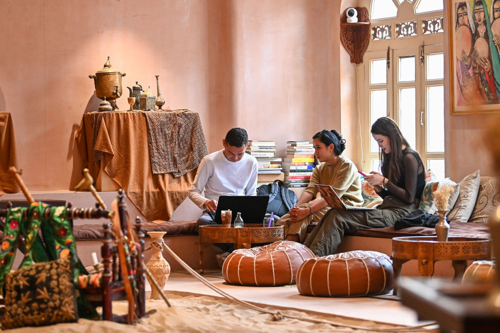 在新疆喀什古城景區(qū),游客在麥吾蘭·圖拉克的咖啡館休息(2023年4月17日攝)。新華社記者
