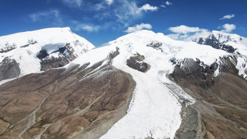 這是在新疆塔什庫(kù)爾干塔吉克自治縣慕士塔格冰川公園拍攝的冰川景觀(2023年9月6日攝,無人機(jī)照片)。新華社記者 金皓原 攝