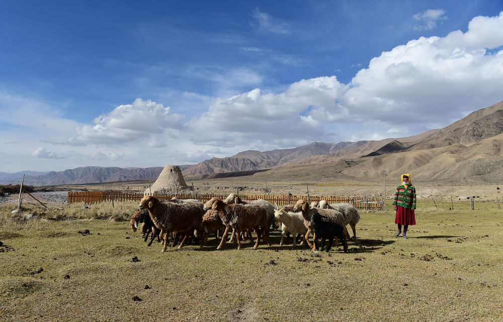 在新疆塔什庫(kù)爾干塔吉克自治縣,牧羊人在吉日尕勒文化遺址的亞爾特拱拜孜古驛站附近放牧(2021年5月3日攝)。新華社記者 侯昭康 攝
