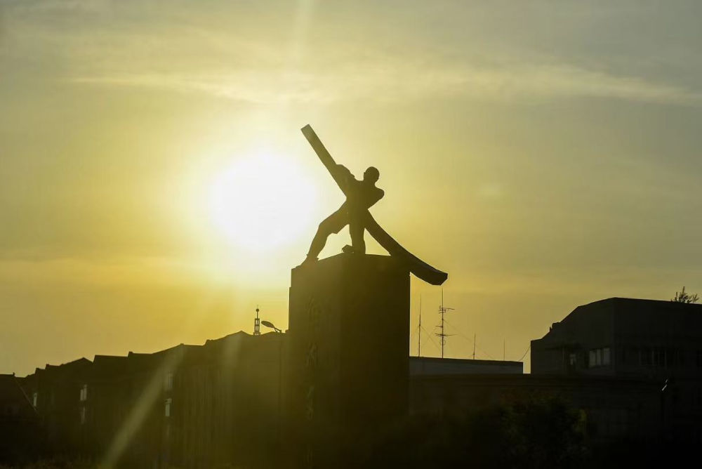 這是吉林市江城廣場上的搖櫓人雕像。新華社記者 顏麟蘊 攝