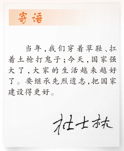退伍回到家鄉(xiāng),杜士林一直保持著軍人本色,在田地里辛勤勞作,到學(xué)校給孩子們講述那段波瀾壯闊的歷史……杜士林的子女告訴記者,雖然父親年歲已高,可只要一談起那段烽火歲月,便立刻精神十足。
