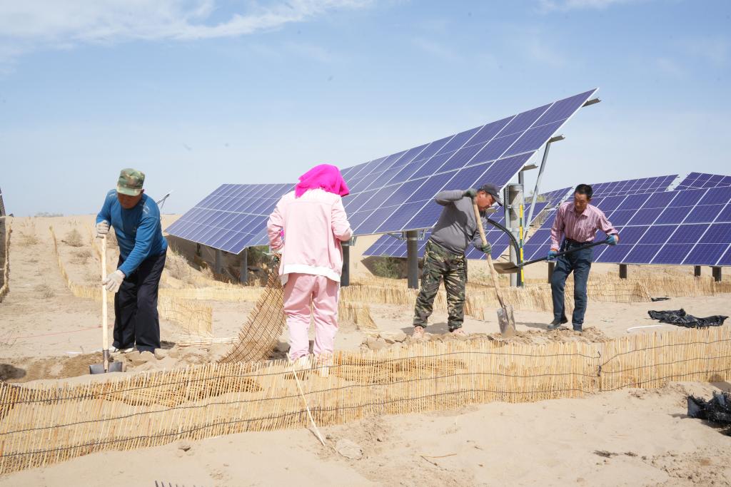 據(jù)介紹,該項目預(yù)計于6月底具備并網(wǎng)發(fā)電條件,投產(chǎn)運(yùn)行后年發(fā)電量達(dá)3.6億千瓦時,配套治理沙地2.4萬畝。新華林場場長賀鑫說:“在開展‘三北’工程攻堅戰(zhàn)以來,我們采取‘以工代賑’形式,組織周邊村民參與光伏項目建設(shè)、林草種植等全流程作業(yè),參與農(nóng)民的人數(shù)超過2000人?!?/p>
