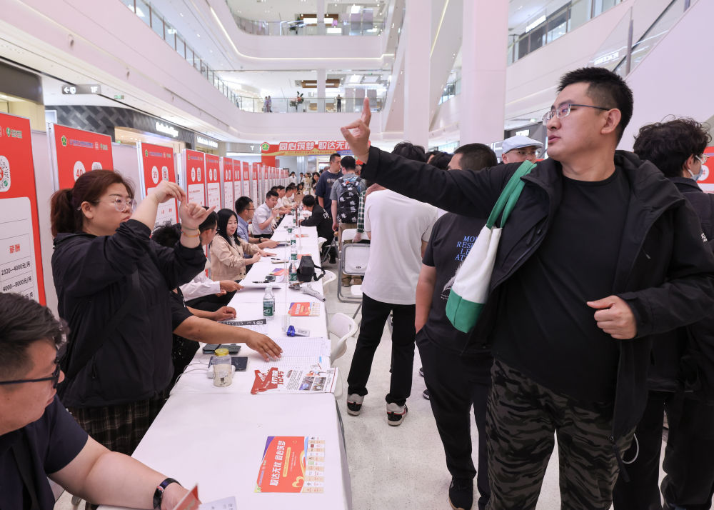 這是5月21日拍攝的招聘會現(xiàn)場。當(dāng)日,“千校萬企供需對接會”(連云港專場)暨江蘇省2025屆高校畢業(yè)生就業(yè)“百日沖刺”行動(dòng)在江蘇連云港舉行。新華社記者 毛俊 攝