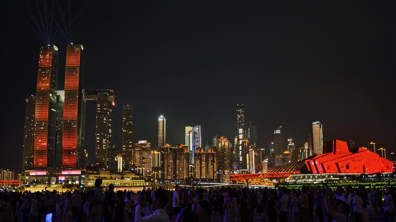 每逢周末和節(jié)假日,無(wú)人機(jī)燈光秀在重慶夜空交織成夢(mèng)幻的畫(huà)卷。渝中區(qū)、南岸區(qū)、江北嘴……很多市民早早就占好了“最佳觀景位”,一邊品味美食一邊享受夜景。當(dāng)夜空變幻的瞬間,大家紛紛舉起手機(jī)記錄這一難忘畫(huà)面:“太漂亮啦!重慶的夜晚越來(lái)越精彩。”