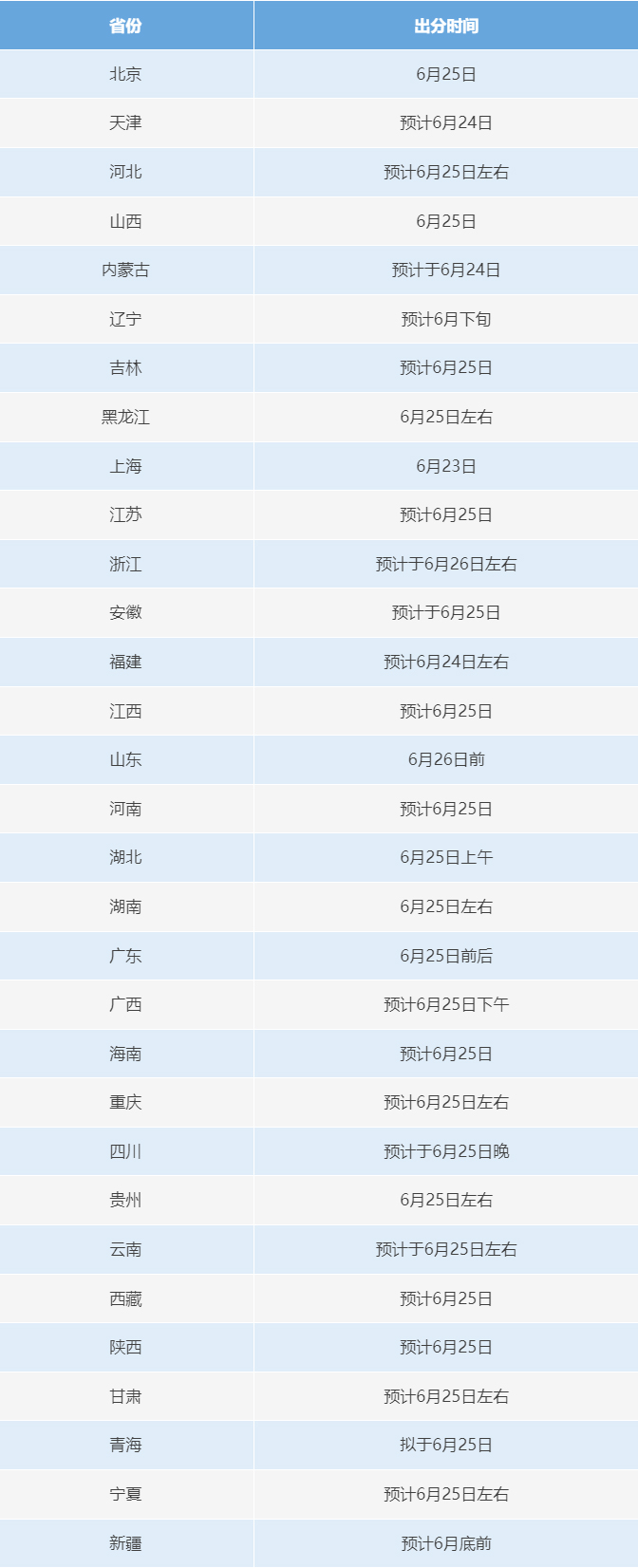 31個(gè)省份高考成績查詢時(shí)間