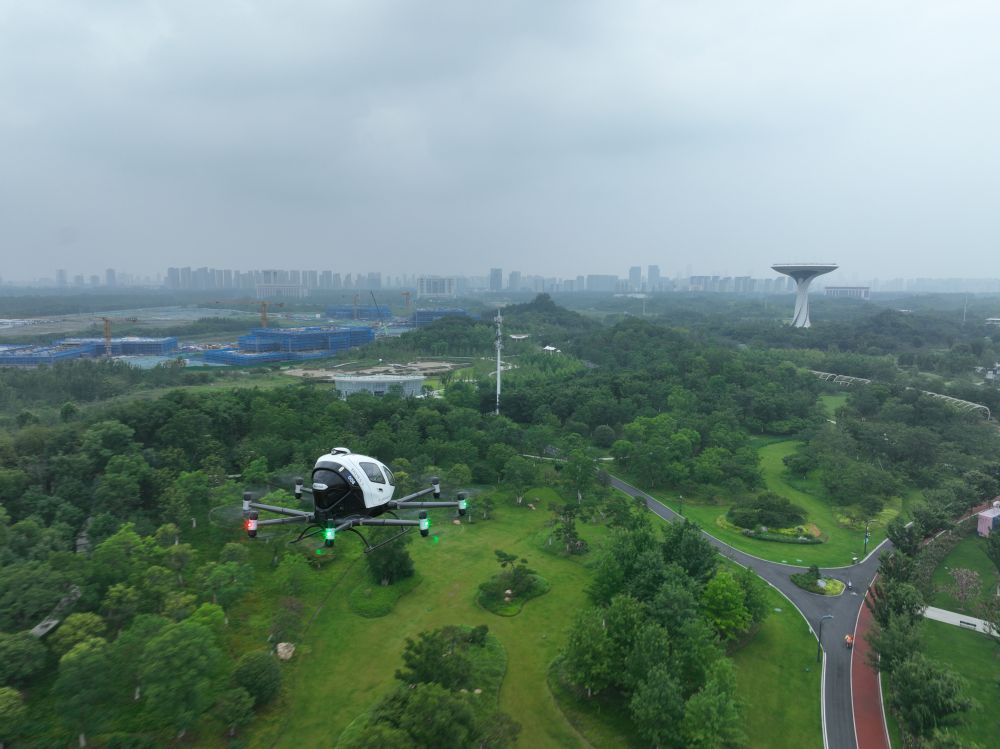 一架電動垂直起降航空器在合肥駱崗公園演示飛行。新華社發(fā)(采訪對象供圖)