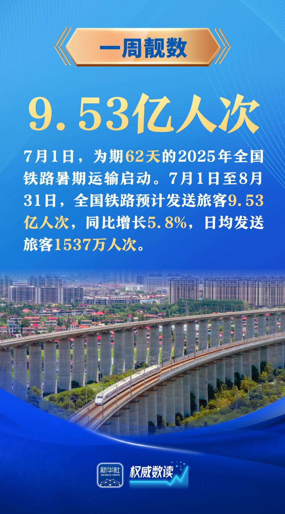 今年“暑運(yùn)”期間全國(guó)鐵路預(yù)計(jì)發(fā)送旅客9.53億人次;今年8000億元“兩重”建設(shè)項(xiàng)目清單已全部下達(dá)完畢;前5個(gè)月我國(guó)規(guī)上互聯(lián)網(wǎng)企業(yè)完成互聯(lián)網(wǎng)業(yè)務(wù)收入7735億元……本周這些“靚”數(shù),值得關(guān)注。