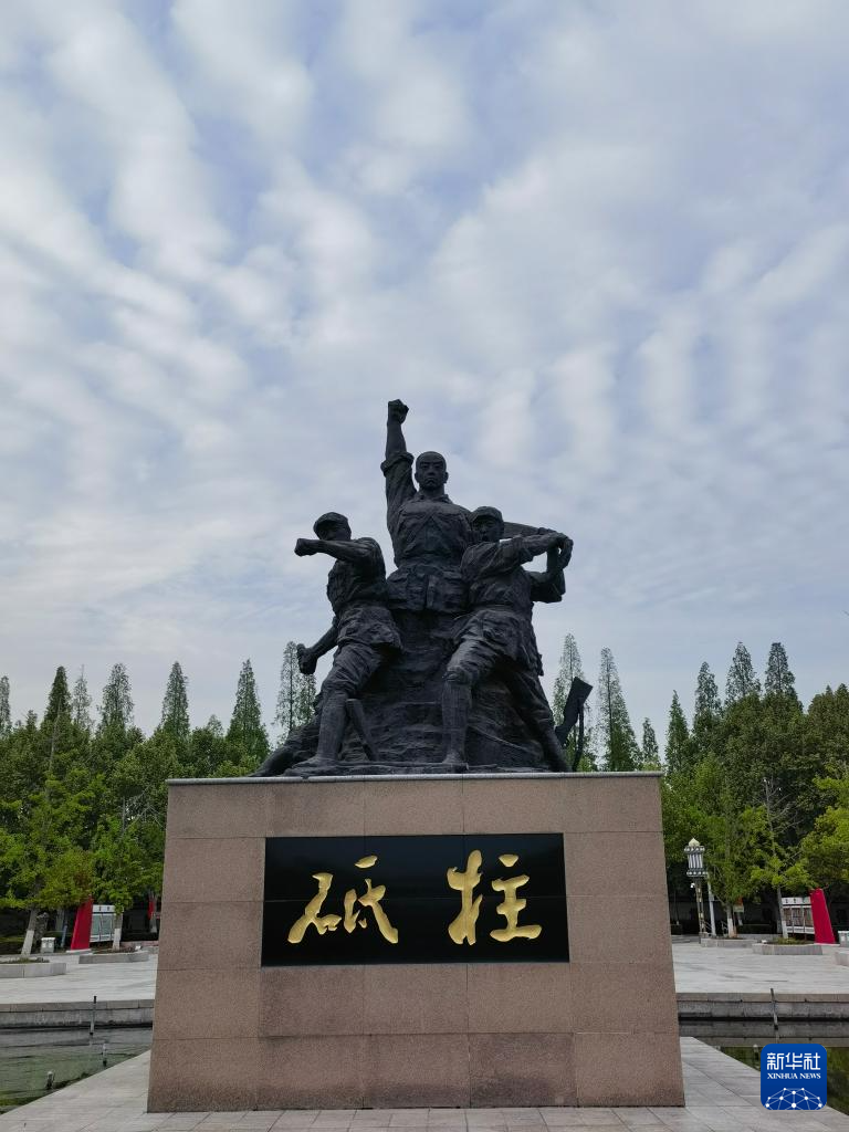 這是4月24日在江蘇淮安劉老莊八十二烈士陵園拍攝的雕塑。新華社記者 丁增義 攝